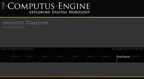 The most import interface element of the Computus Engine will be the perpetual timeline. I want it to be infinitely zoomable from the smallest chronon out to the billions of year since the Big Bang. What's more I wanted to at least prove this was possible by the end of the first year. I admit posting it at the end of December is really cutting it fine but thanks to 2008 being one second longer than usual, I made it!